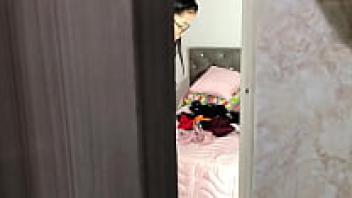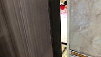 My stepsister girl in thong's hidden camera behind the door (dressing, brinete, big ass, thong)