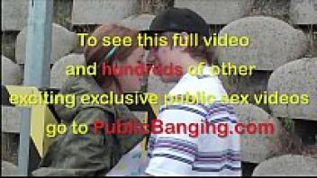 A cute blonde girl undresses for a street sex gang bang orgy with random people in public.