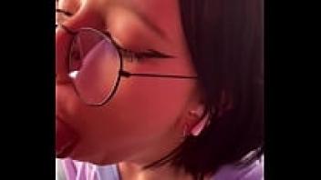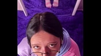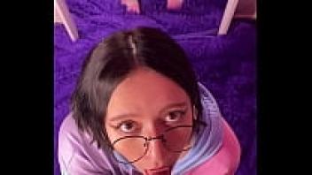 Young Blowjob Deepthroat Nerdy Girl with Glasses