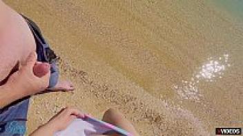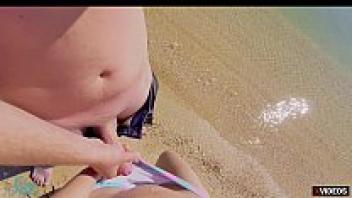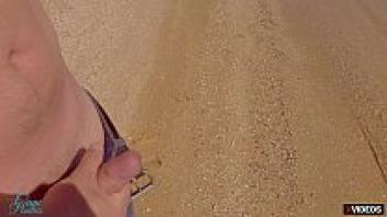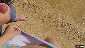 Sex on the beach with a hot teen creampied in public