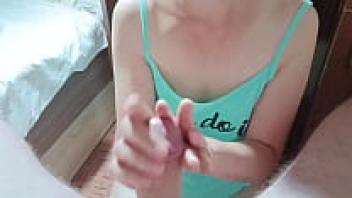 Big boobies as a result of an amateur Asian blowjob cumshot
