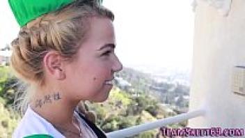 James Brookxxx gives the 18-year-old teen triple creampies, which the teen swallows.