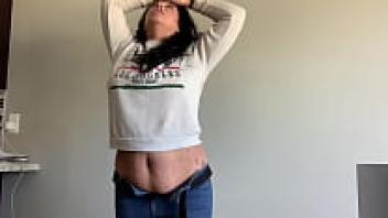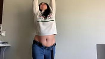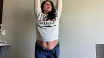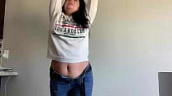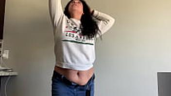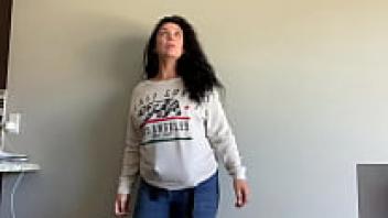 A older stepmother with large tits and a delicious ass slowly undresses as she moves about the room. PAWG upskirt. desire for a fat milf at home. amateur.