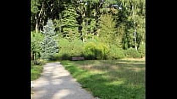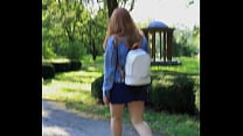 Observing a seductive voyeur in the park having sex with her pussy