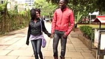 A gigantic black dick gives a stunning ebony girl a bone during a black pornographic video.