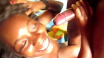 A messy BJ is given by a really attractive ebony girl.
