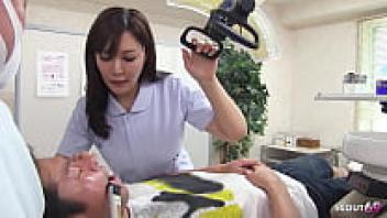 In this uncensored JAV, a Japanese teen nurse uses blowjobs to help a worried client relax.