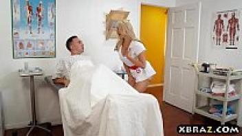 Nurse deepthroats and loves her patients huge cock