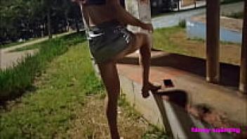 Carmels is an amateur babe who upskirts and voyeur masturbates a brunette in public at home.