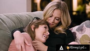 An attractive and inquisitive stepmother is seduced into anal fingering by a horny, brunette teen.