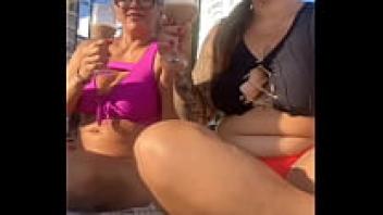 We are having a great time by ourselves on the beach, feeling quite carefree and eager to go into trouble without our husband noticing.