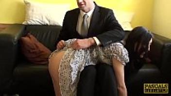 Before having hard anal sex, a gorgeous sub with glasses gets spanked.