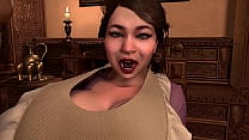 In reverse cowgirl, a curvy MILF with tattoos is riding high | 3D porn
