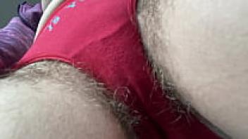 Close-up of a love stepmother's hairy, dripping pussy