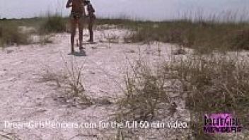 Voyeur Beach. On a public beach, a stunning blonde beauty is riding her partner.