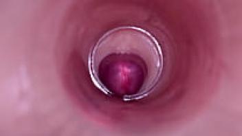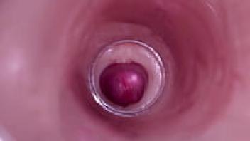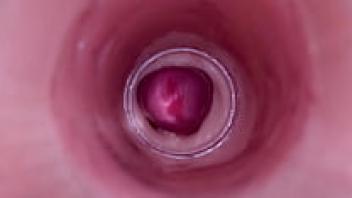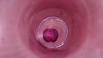 Real amateur close-up of a wet, natural teen pussy making him cum quickly