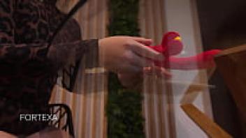 At the table, a plump girl with flawless meaty pussy masturbates and squirts