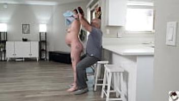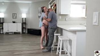 After class, the cute, plump girl has sex with the math teacher on her pussy.