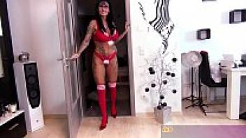 Get a surprise creampie pov for Christmas from a German large tits milf.