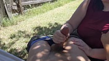 An amateur handjob performed by a really hot Milf Jerk, who is off her first Big White Cock.