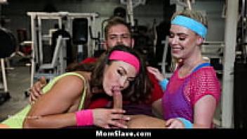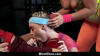 Her stepson ejaculates her three times in her ass because she is hot due to a lack of a dick.