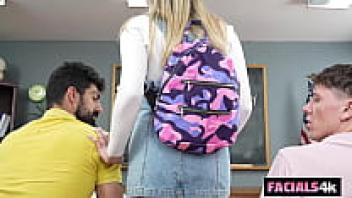 To help her stuck stepsister, her stepbro's big cock floods her love hole.