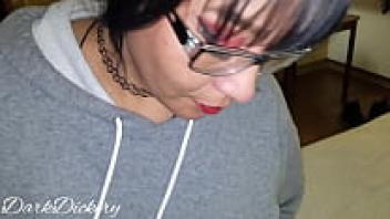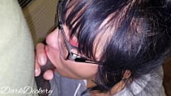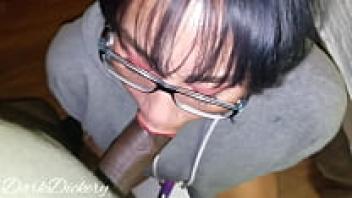 Warm cum is swallowed by a horny geek who sits on her vibrator and sucks her dick while sporting red lipstick. Anal love, pussy, and amateur blowjob