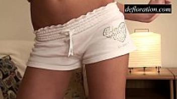 A boyfriend records an amateur girlfriend's first orgasmic masturbation.