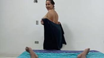 A sexy blonde gives her a naked massage while pouring oil all over her body and grinding while she is naked.