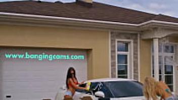 Sexy Car Wash with the Banging Cams Ladies: Visit BangingCams.com to see the group shower they had!