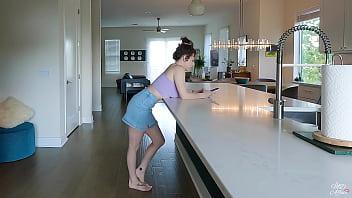 In the kitchen, a lesbian stepdaughter and her stepmother are in love.