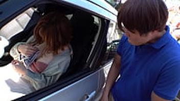 The woman who is flaunting her ridiculous breasts in the car's passenger seat irritates me. In the passenger seat, I have sex with an ugly, curvaceous beauty!