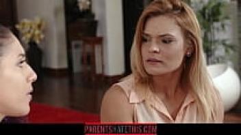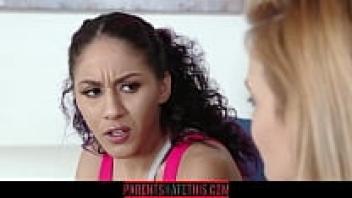 Ebony stepmother participates in black porn with her stepdaughter and her lover, who has a large dick.