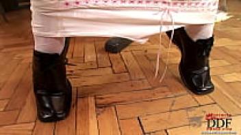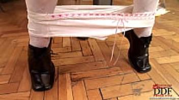 Black Angel, a slender brunette with an unexpectedly thick ass, gets sodomised and smeared with sperm.