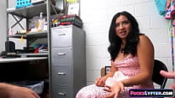 A skinny playgirl elevates her small frame to a stud's enormous dick.