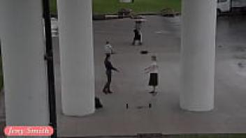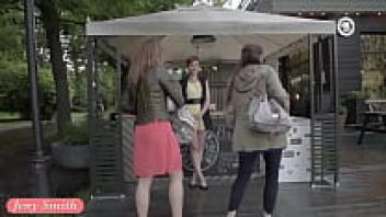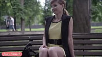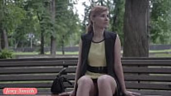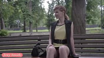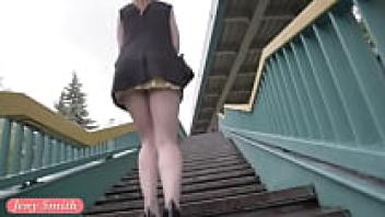 On the streets, Jeny Smith, a public flasher, gives amazing upskirt views.