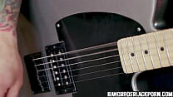 Because she is engaging in interracial porn, Ebony's stepsister requests that her brother cease playing the guitar.