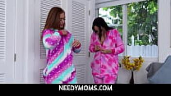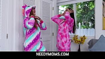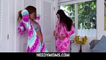 Callie Black and Gaby Ortega, NeedyMoms' horny stepsisters, make out in bed and lick each other's pussies.