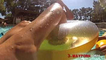 Super Hot Amateur Threesome by the Pool in 3-Way Porn