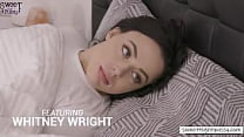 Small-framed teenager wearing glasses For sperm, Sara Bell opens her mouth.