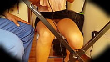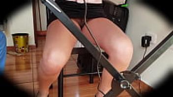Nataly, a nymphomaniac Mexican secretary wearing an upskirt and no underwear