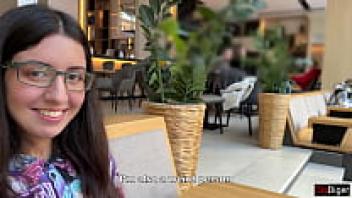 AnGelya.G. Big facial for attractive brunette with spectacles and a wonderful throat