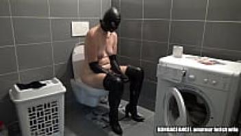 MILF wearing shackles and lengthy leather gloves (Home video)