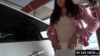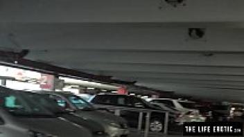In a parking garage, a cute girl publicly masturbate.