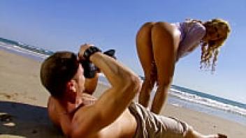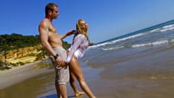 An early scene of group sex on the beach in Jordanne Kali
