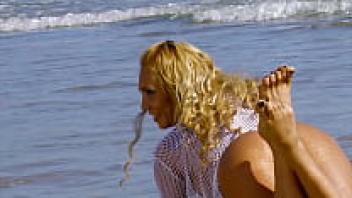 Milf sex with a brunette on a beach
