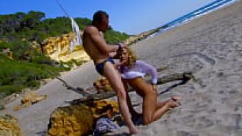 Loved on a beach by a Latina with big tits