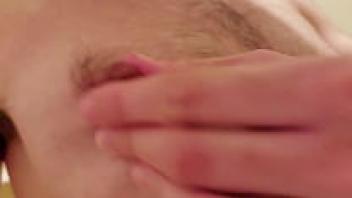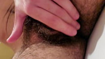 Close-up of a stepson's lustful, hairy, pussy mother