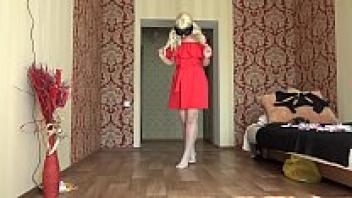 At a picture shoot, a sexy model with a large ass and a hairy pussy tries on a variety of underwear. Fetish.