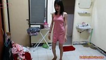 Thai shemale Am caresses her penis by herself at home.